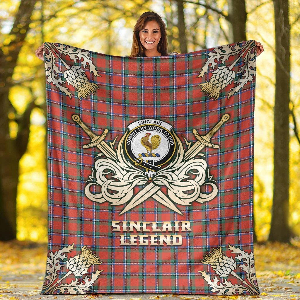 Sinclair Ancient Tartan Gold Courage Symbol Blanket