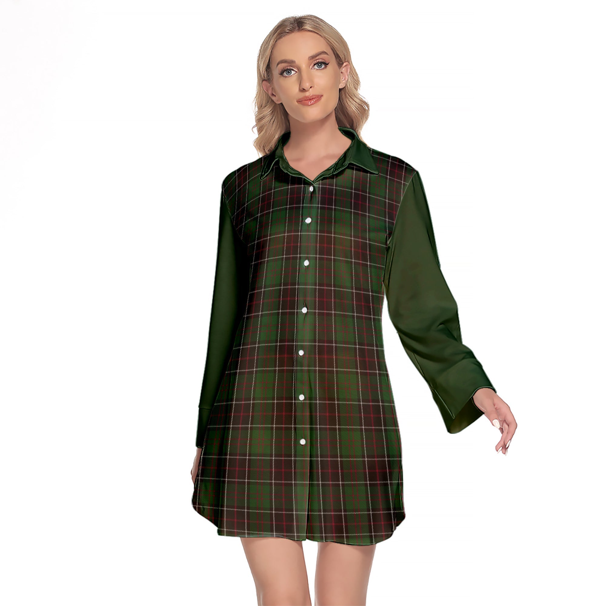 Sinclair Hunting Tartan Women's Lapel Shirt Dress With Long Sleeve