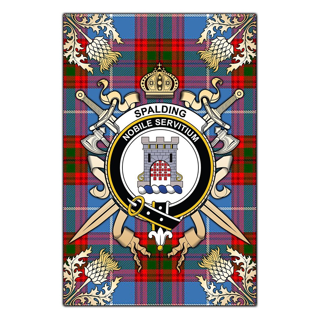 Spalding Tartan Crest Black Garden Flag - Gold Thistle Style
