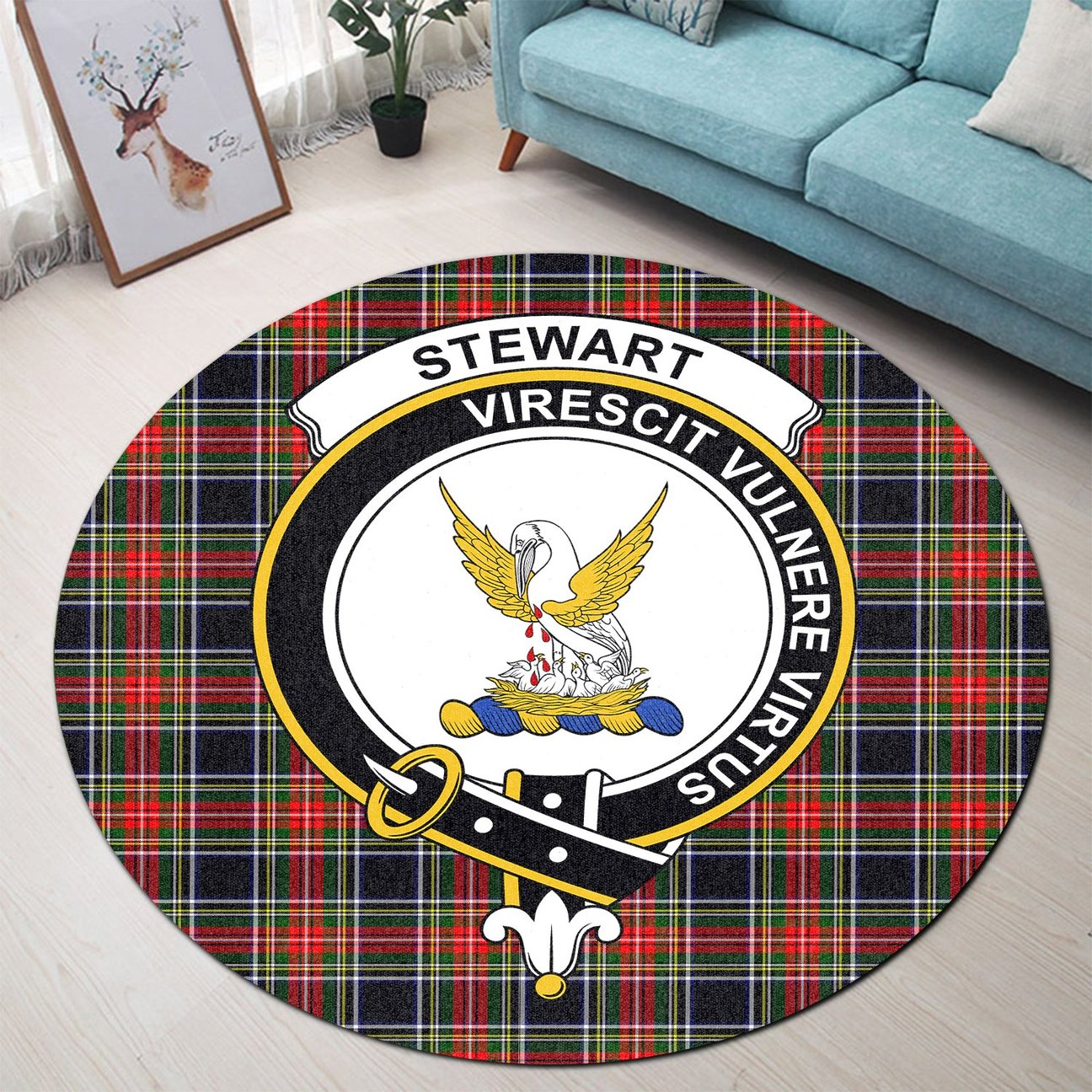 Stewart Black Tartan Crest Round Rug