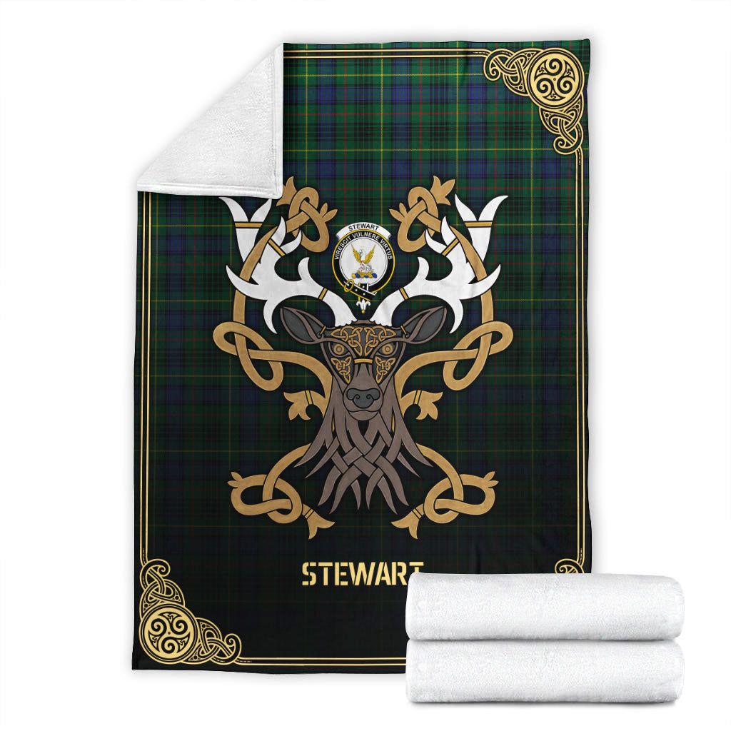 Stewart Hunting Modern Tartan Crest Premium Blanket - Celtic Stag style