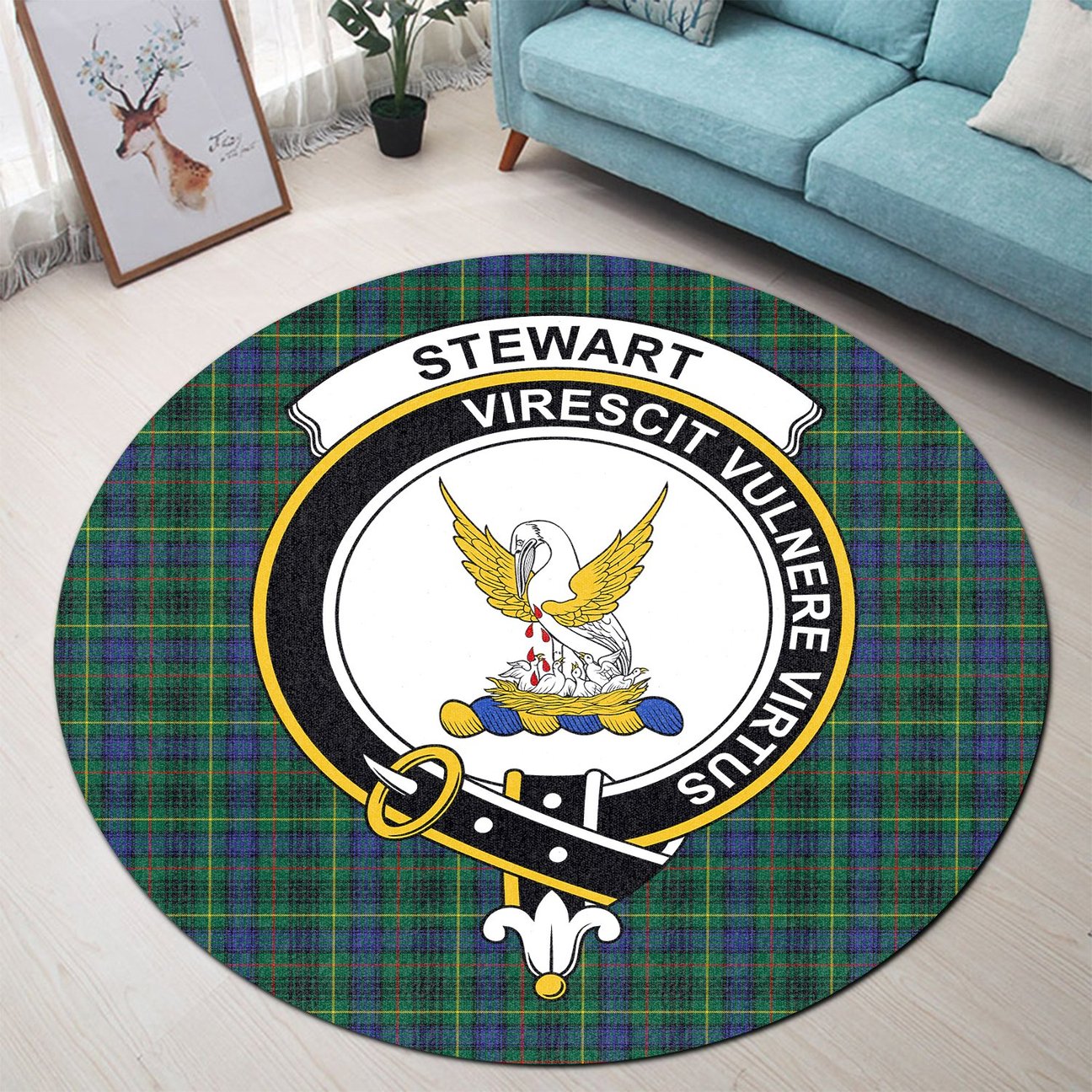 Stewart Hunting Modern Tartan Crest Round Rug