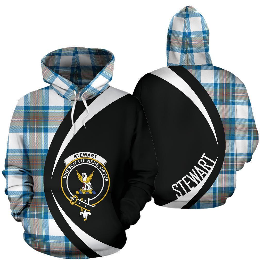 Stewart Muted Blue Tartan Crest Hoodie - Circle Style