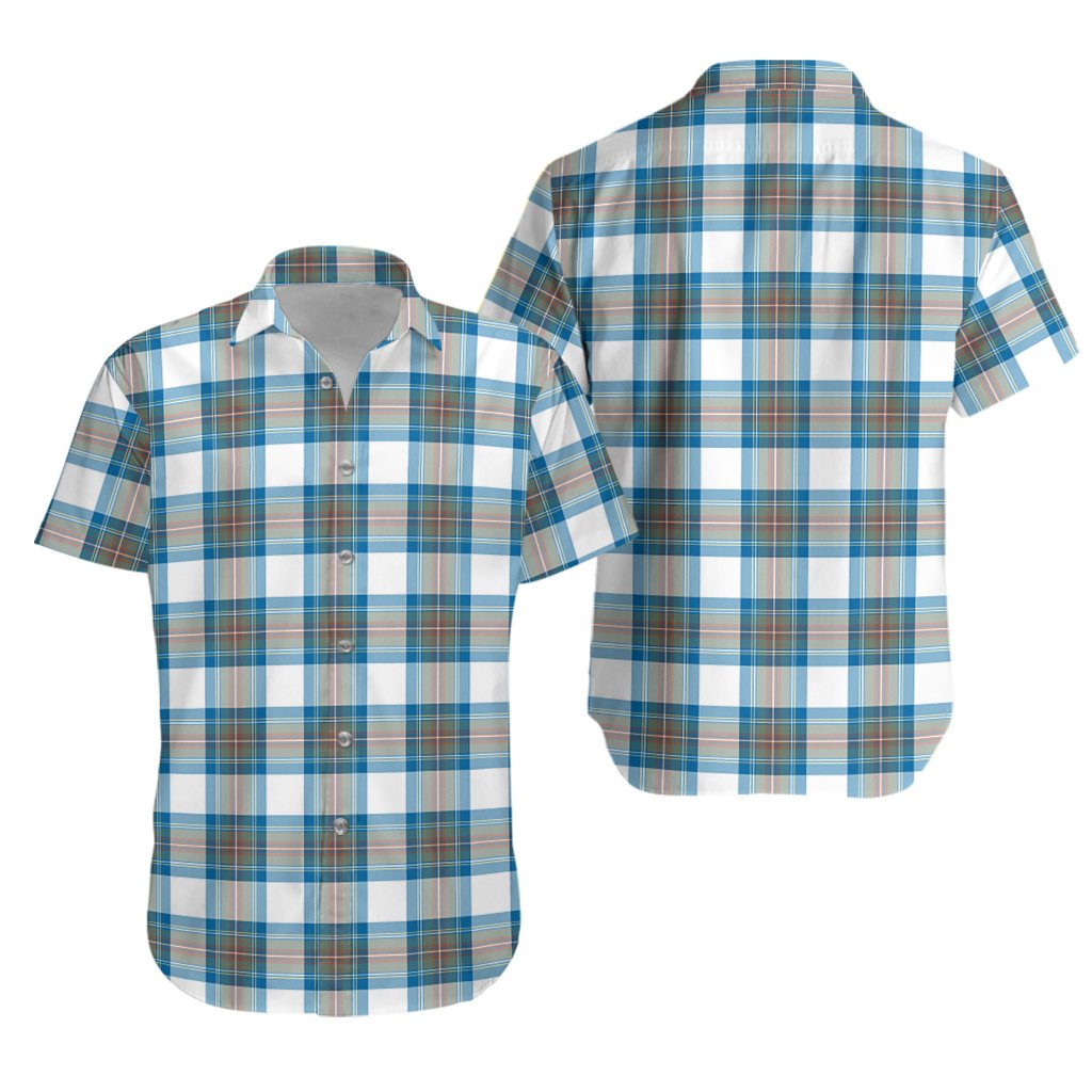 Stewart Muted Blue Tartan Hawaiian Shirt