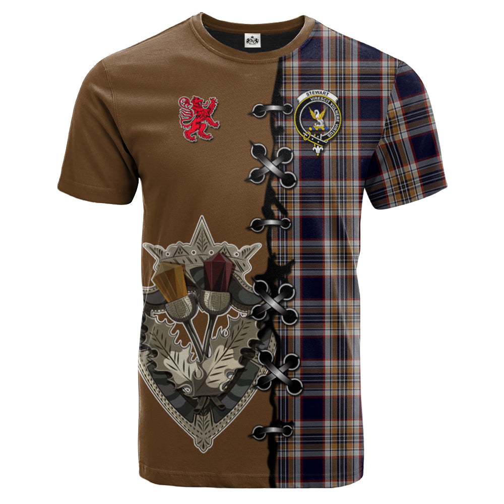 Stewart Navy Tartan T-shirt - Lion Rampant And Celtic Thistle Style