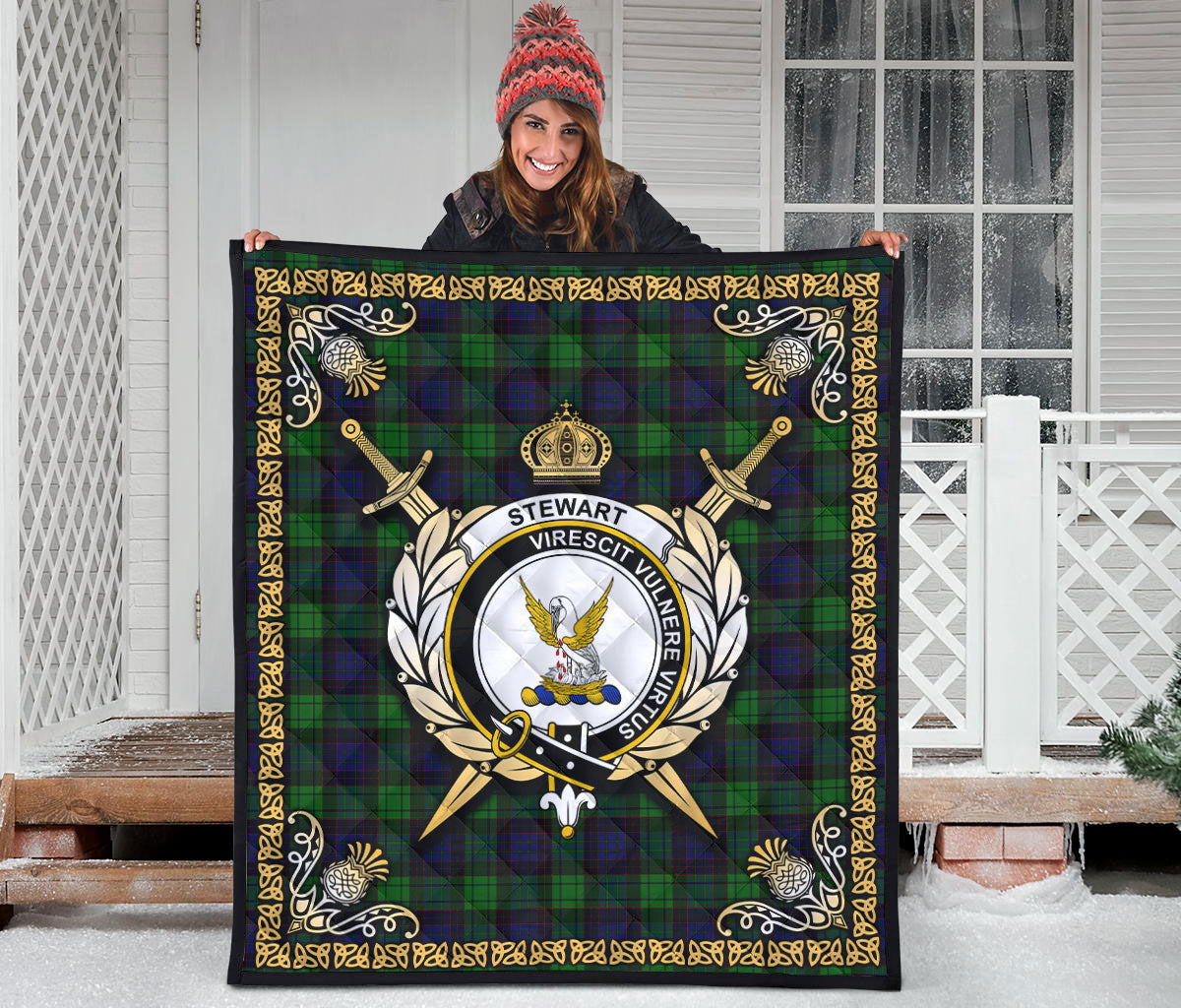 Stewart Old Modern Tartan Crest Premium Quilt - Celtic Thistle Style