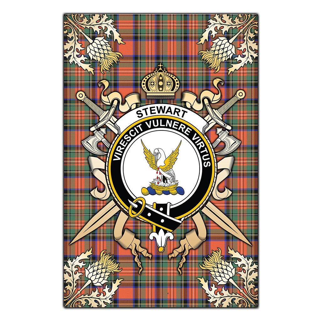 Stewart Royal Ancient Tartan Crest Black Garden Flag - Gold Thistle Style