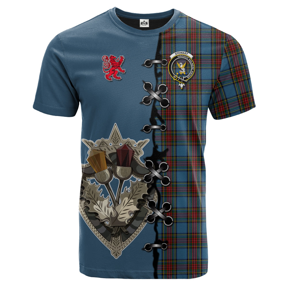 Stewart Royal Blue Tartan T-shirt - Lion Rampant And Celtic Thistle Style