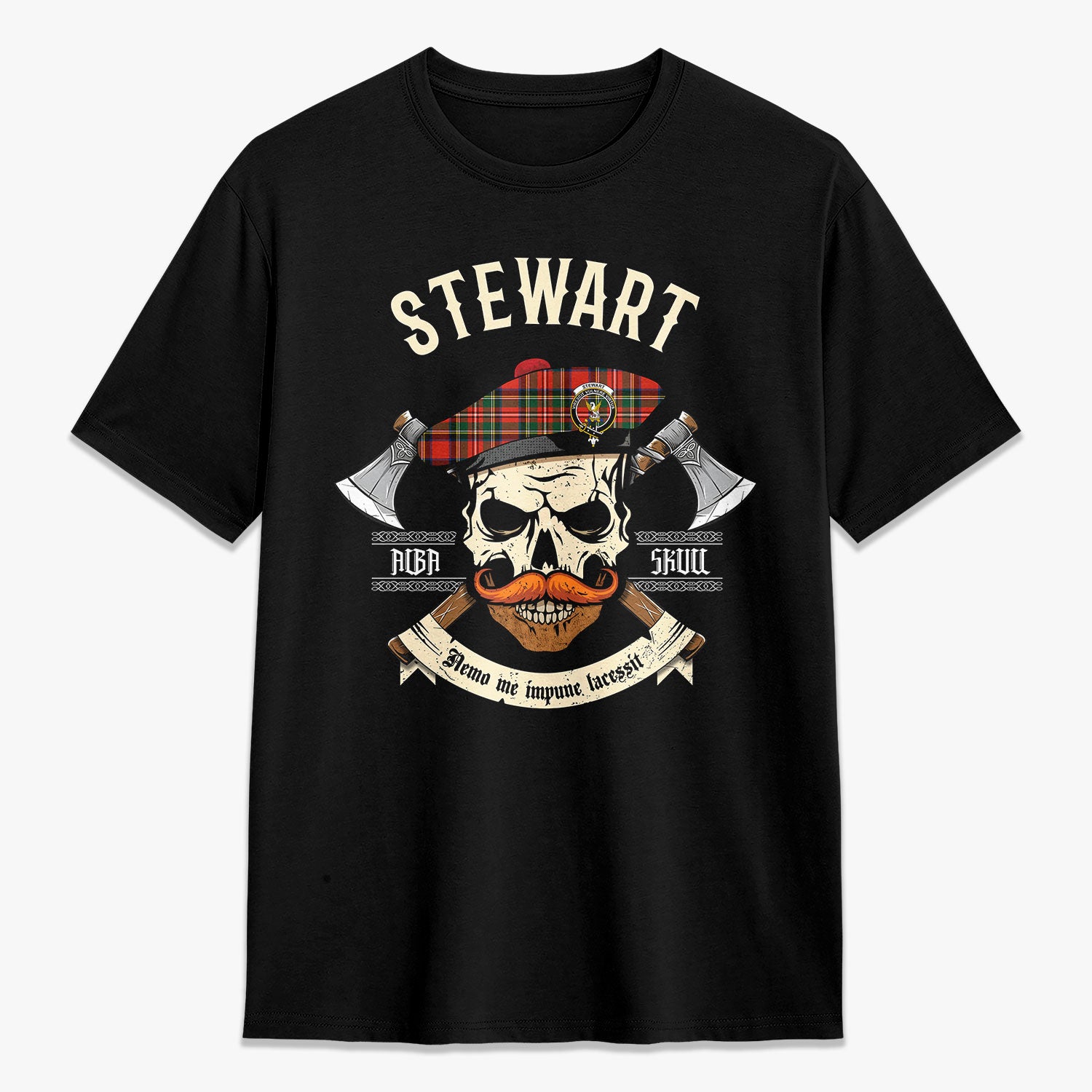 Stewart Royal Modern Tartan Crest 2D T-shirt - Alba Skull Style