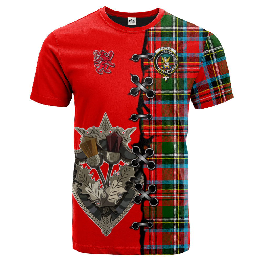 Stewart Royal Tartan T-shirt - Lion Rampant And Celtic Thistle Style
