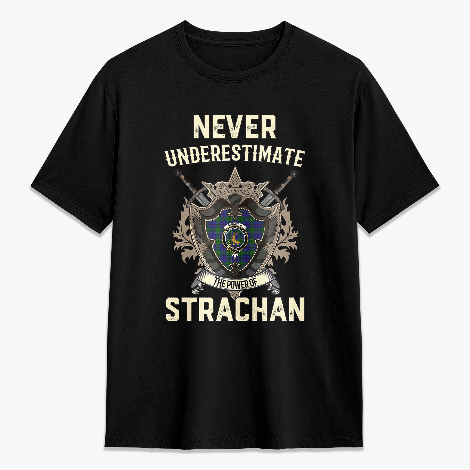 Strachan Tartan Crest 2D T-shirt - Never Underestimate Style