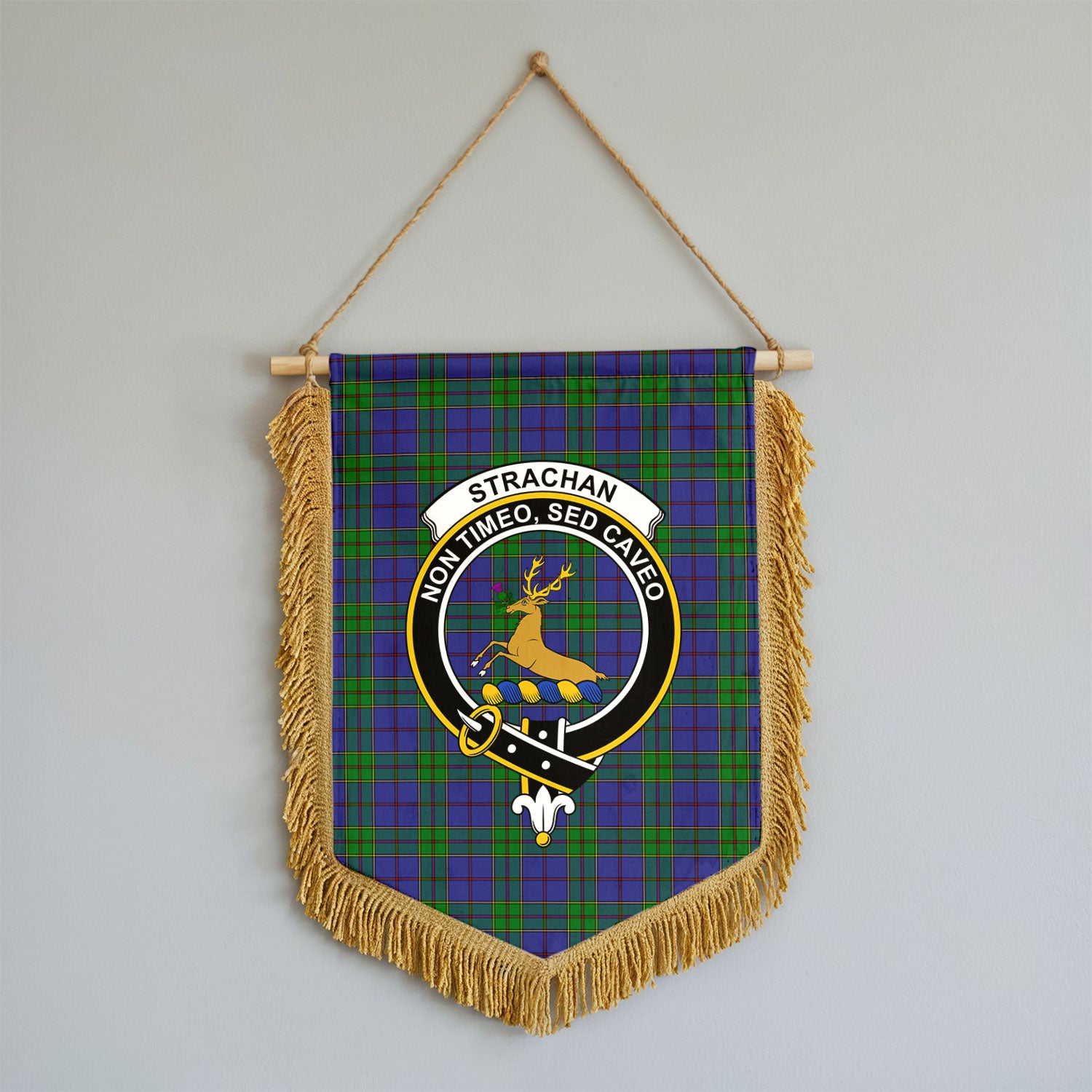 Strachan Tartan Crest Wall Hanging Banner - Wood Pole