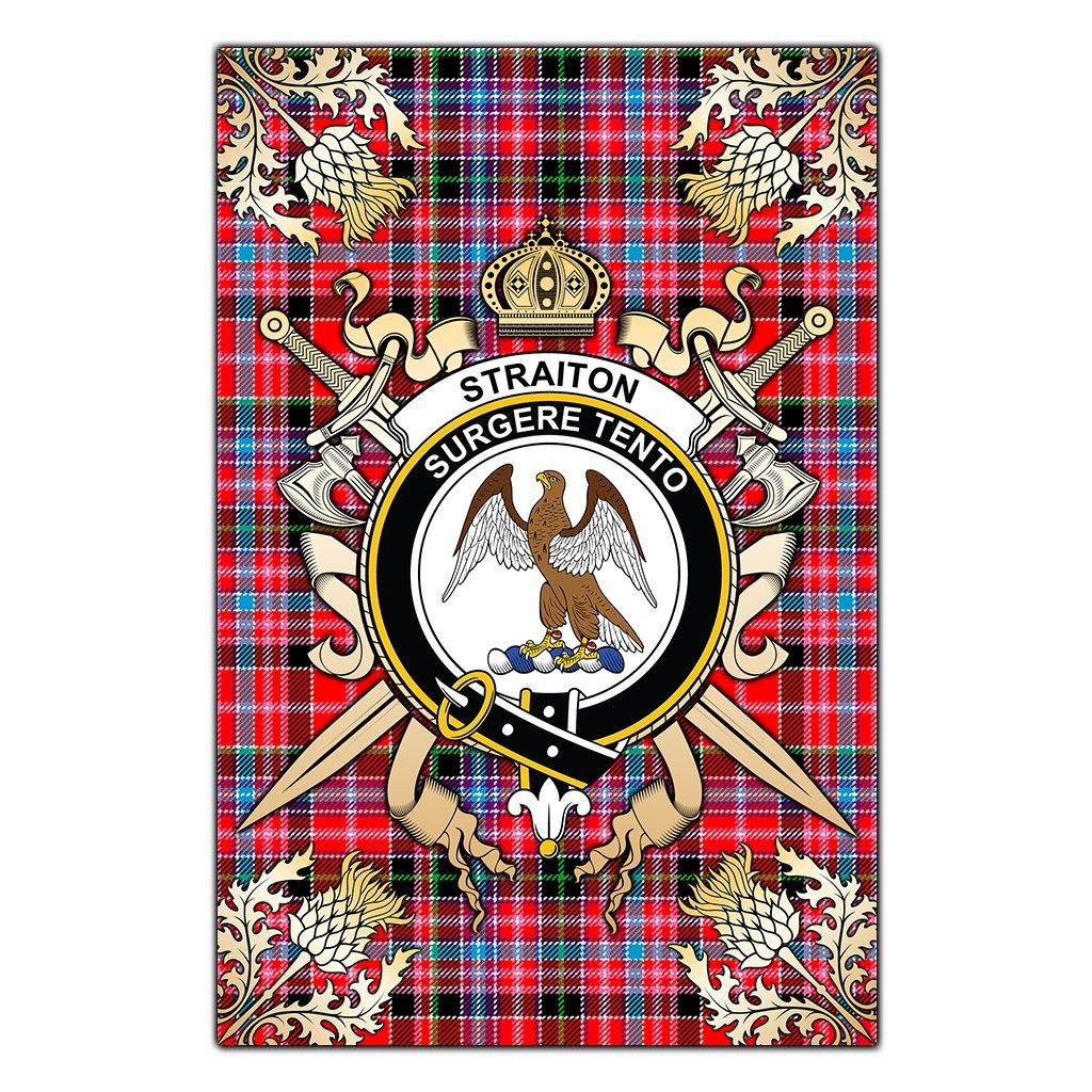 Straiton Tartan Crest Black Garden Flag - Gold Thistle Style
