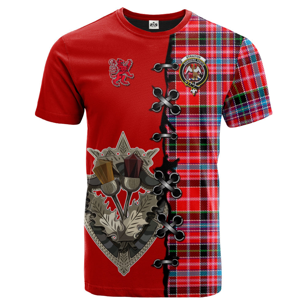 Straiton Tartan T-shirt - Lion Rampant And Celtic Thistle Style