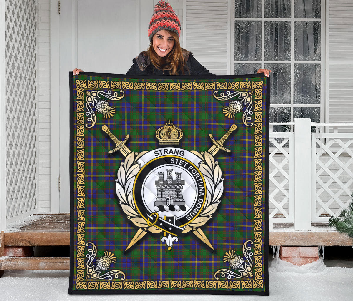 Strang (or Strange) Tartan Crest Premium Quilt - Celtic Thistle Style