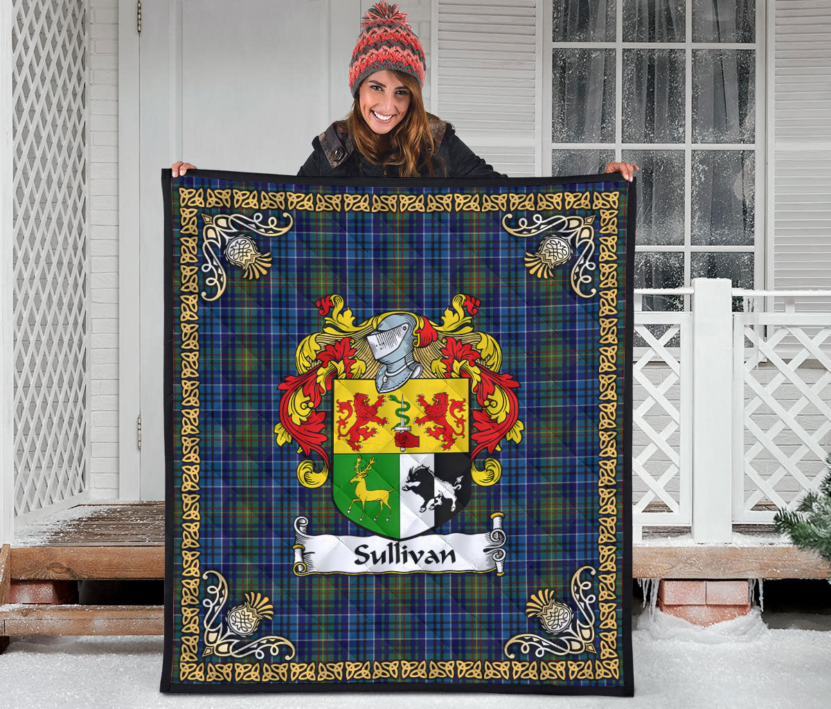 Sullivan Tartan Crest Premium Quilt - Celtic Thistle Style