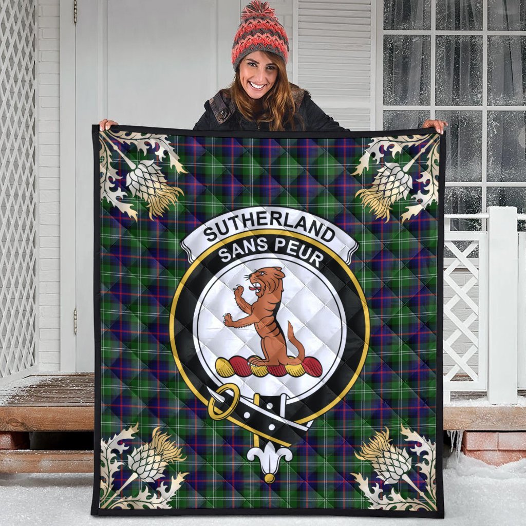 Sutherland Modern Tartan Crest Premium Quilt - Gold Thistle Style