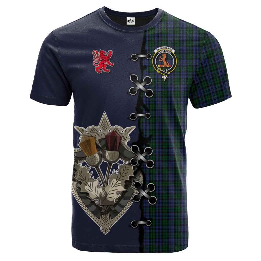 Sutherland Tartan T-shirt - Lion Rampant And Celtic Thistle Style