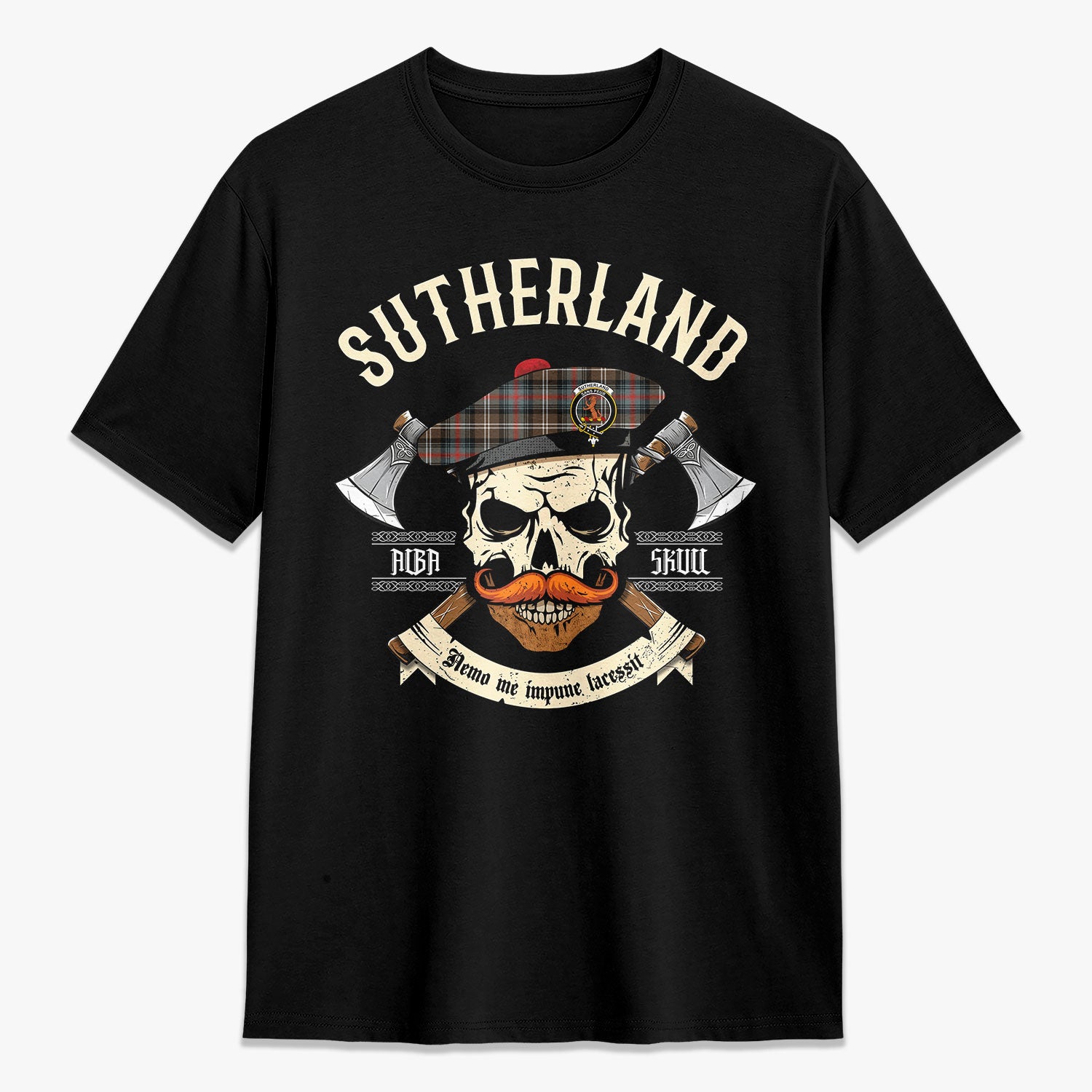 Sutherland Weathered Tartan Crest 2D T-shirt - Alba Skull Style,