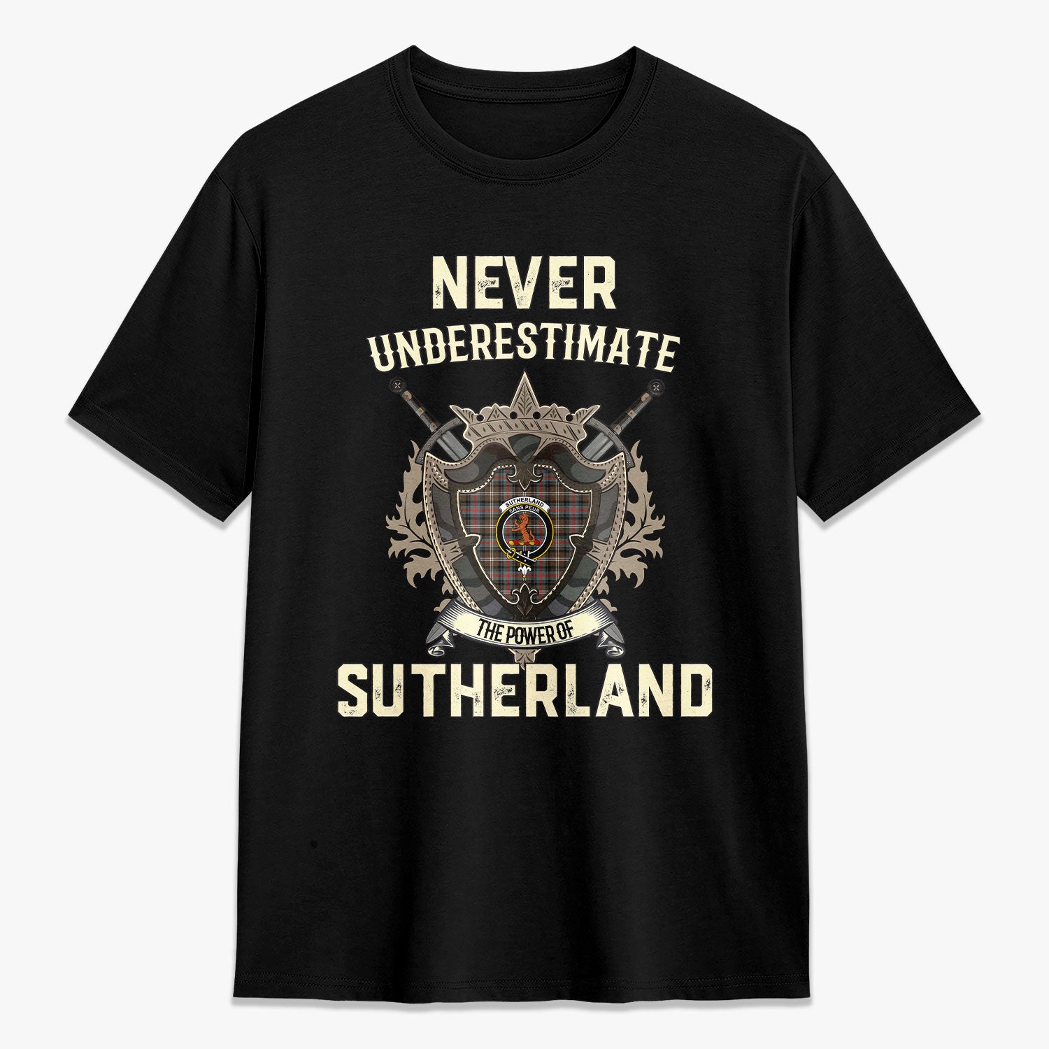 Sutherland Weathered Tartan Crest 2D T-shirt - Never Underestimate Style