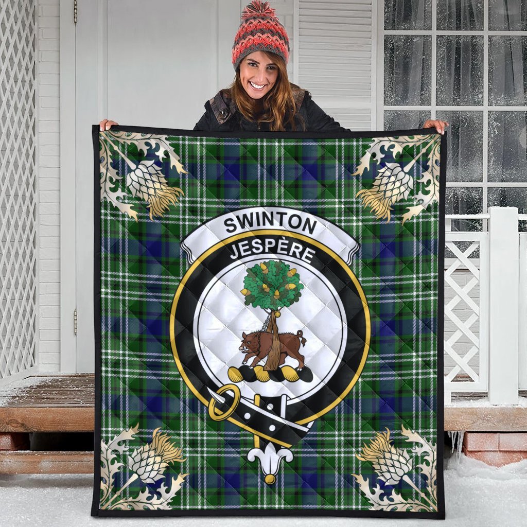Swinton Tartan Crest Premium Quilt - Gold Thistle Style