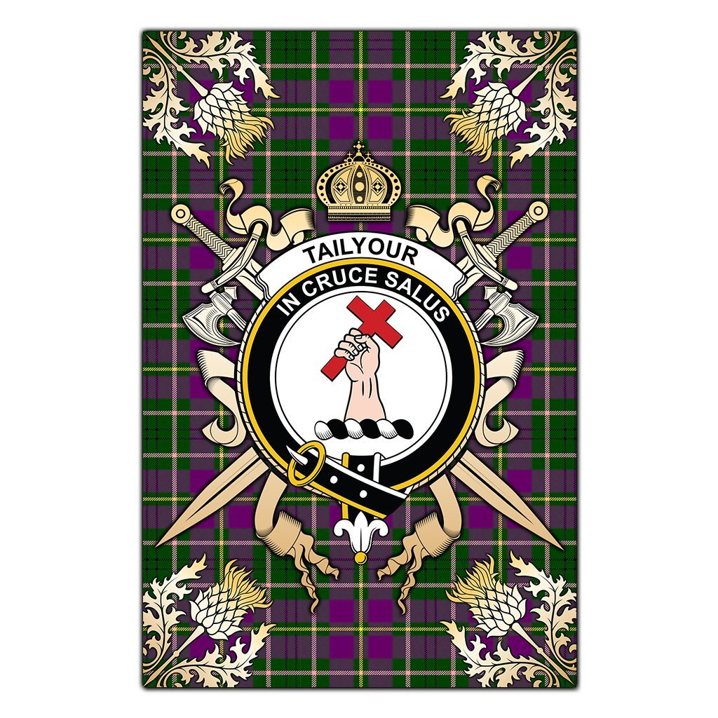 Taylor Tartan Crest Black Garden Flag - Gold Thistle Style