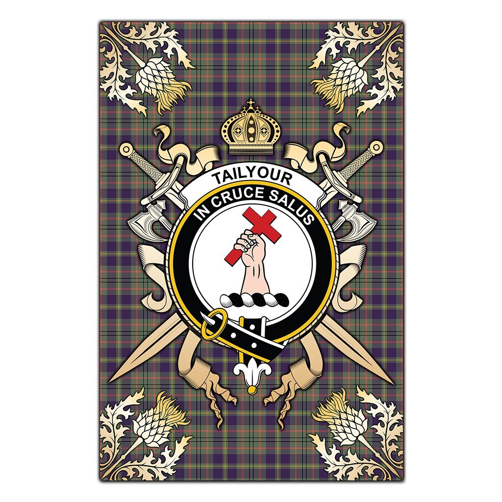 Taylor Weathered Tartan Crest Black Garden Flag - Gold Thistle Style