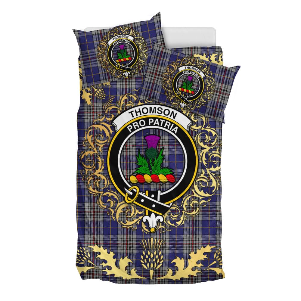 Thompson Variant Tartan Crest Bedding Set - Golden Thistle Style