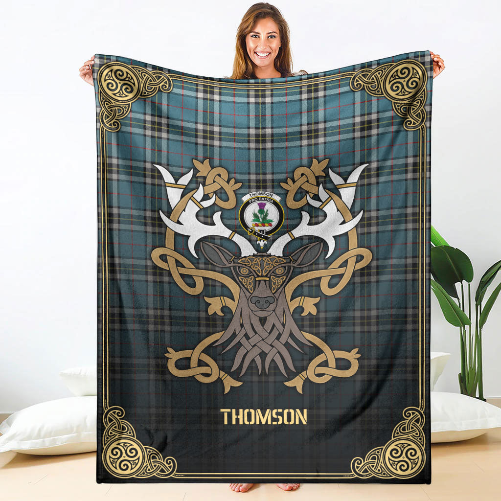 Thomson Blue Tartan Crest Premium Blanket - Celtic Stag style