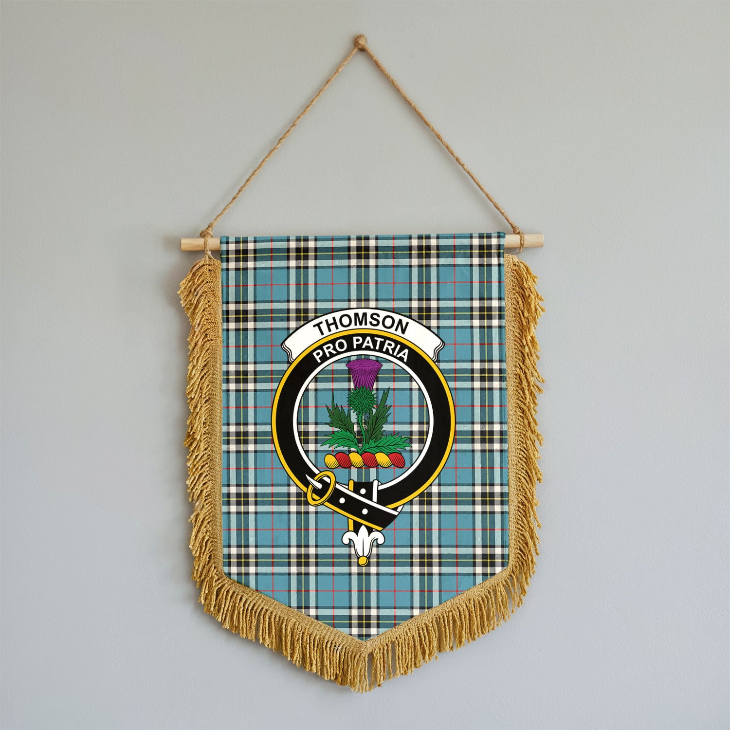 Thomson Blue Tartan Crest Wall Hanging Banner - Wood Pole