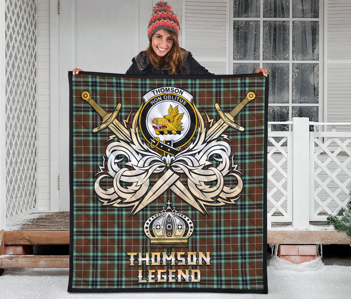 Thomson Hunting Modern Tartan Non Oblitus Crest Legend Gold Royal Premium Quilt