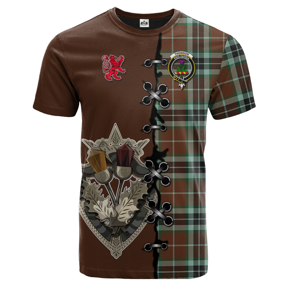 Thomson Hunting Modern Tartan T-shirt - Lion Rampant And Celtic Thistle Style