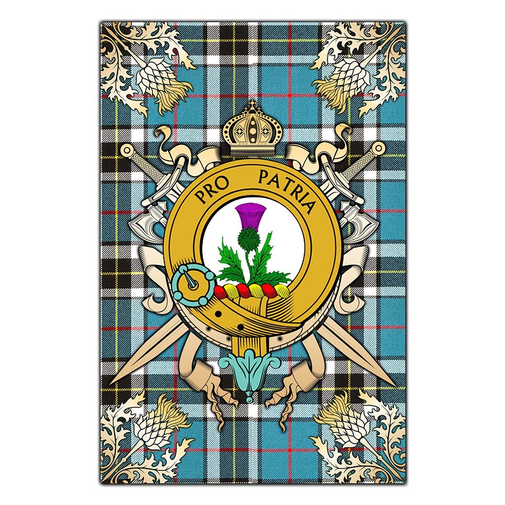 Thomson Tartan Crest Black Garden Flag - Gold Thistle Style
