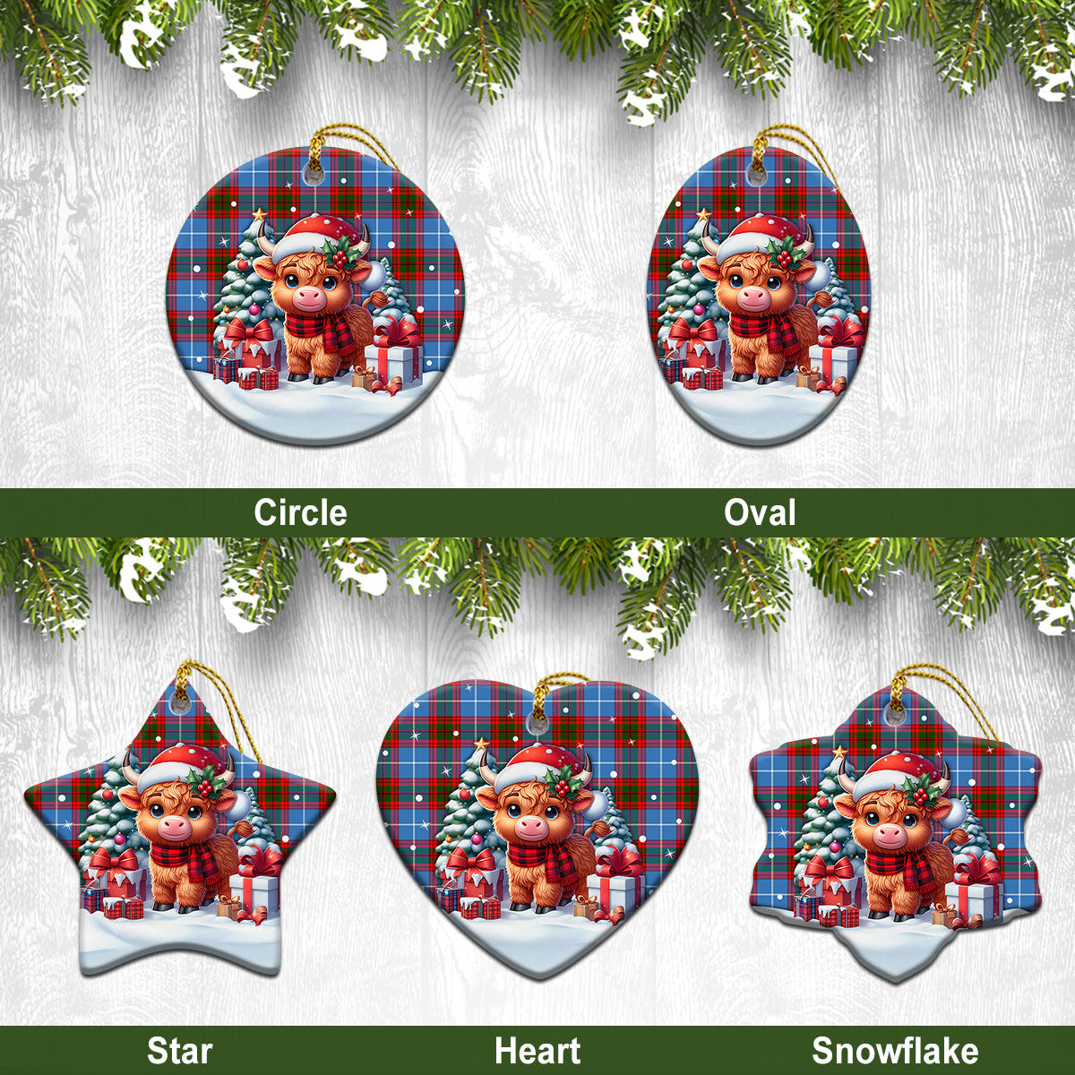 Trotter Tartan Christmas Ceramic Ornament - Highland Cow Winter Style