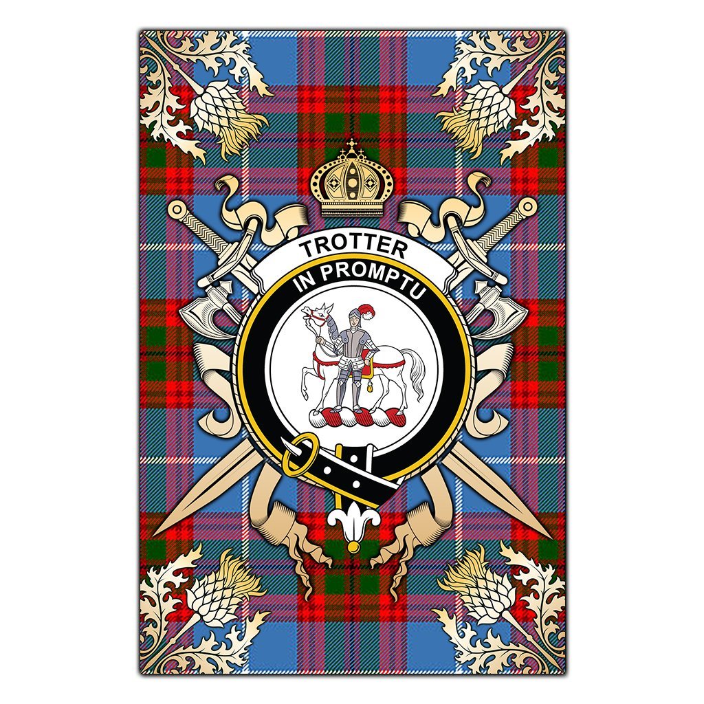 Trotter Tartan Crest Black Garden Flag - Gold Thistle Style