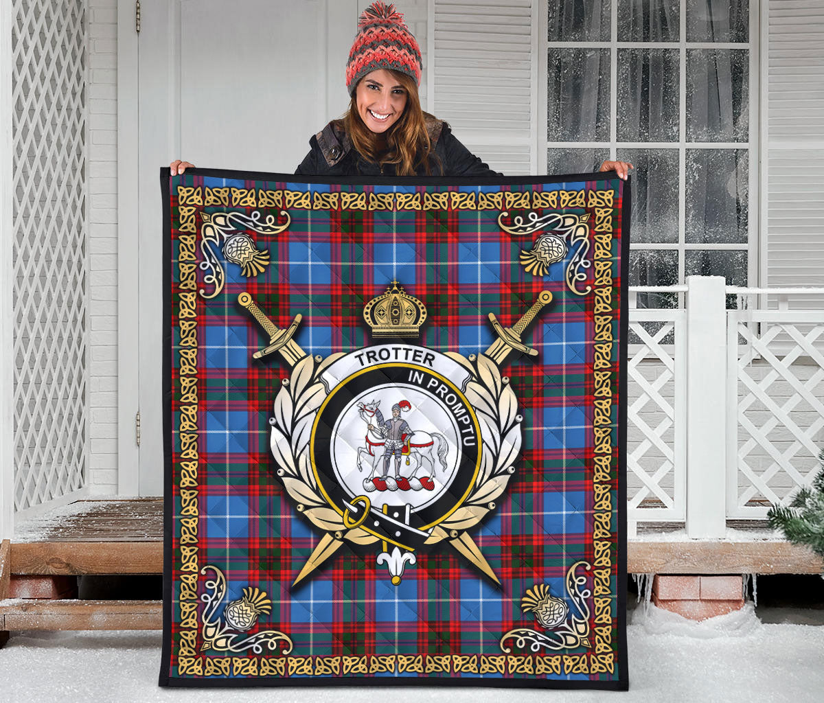Trotter Tartan Crest Premium Quilt - Celtic Thistle Style