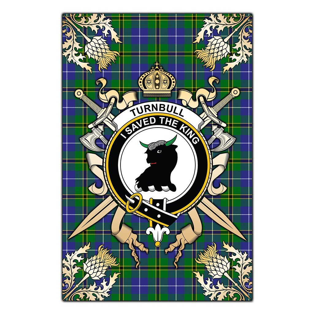 Turnbull Hunting Tartan Crest Black Garden Flag - Gold Thistle Style