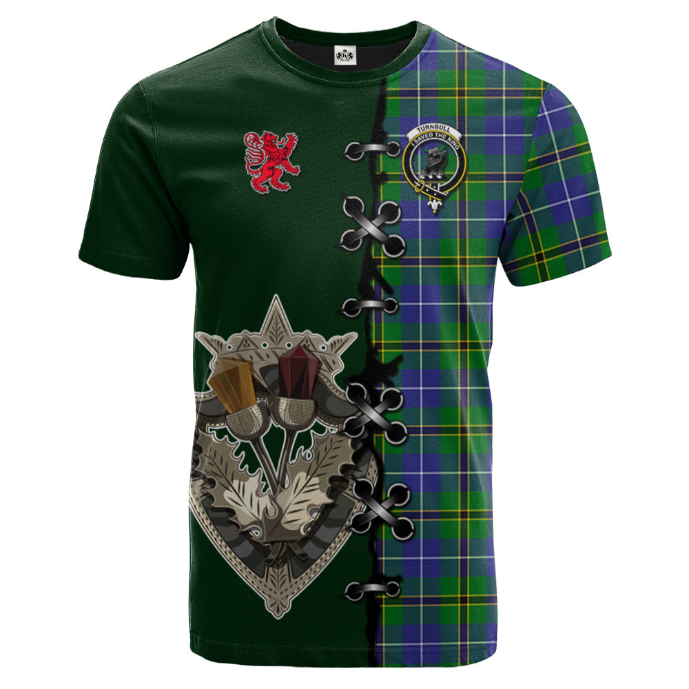 Turnbull Hunting Tartan T-shirt - Lion Rampant And Celtic Thistle Style