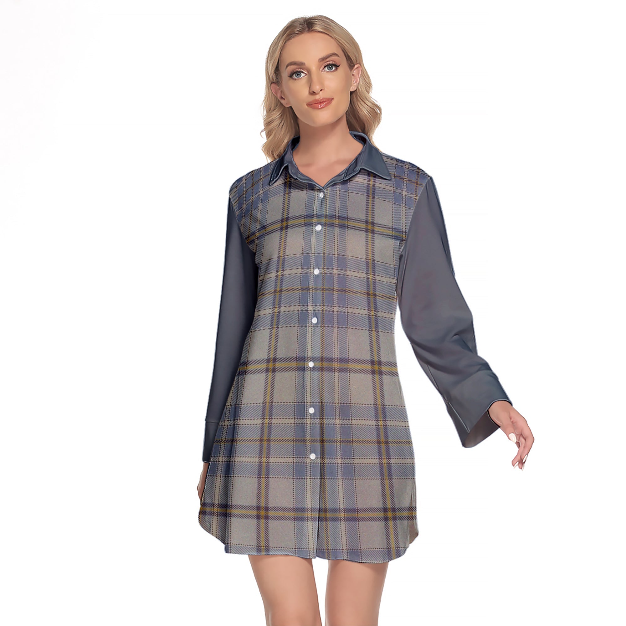 Tweedie Tartan Women's Lapel Shirt Dress With Long Sleeve