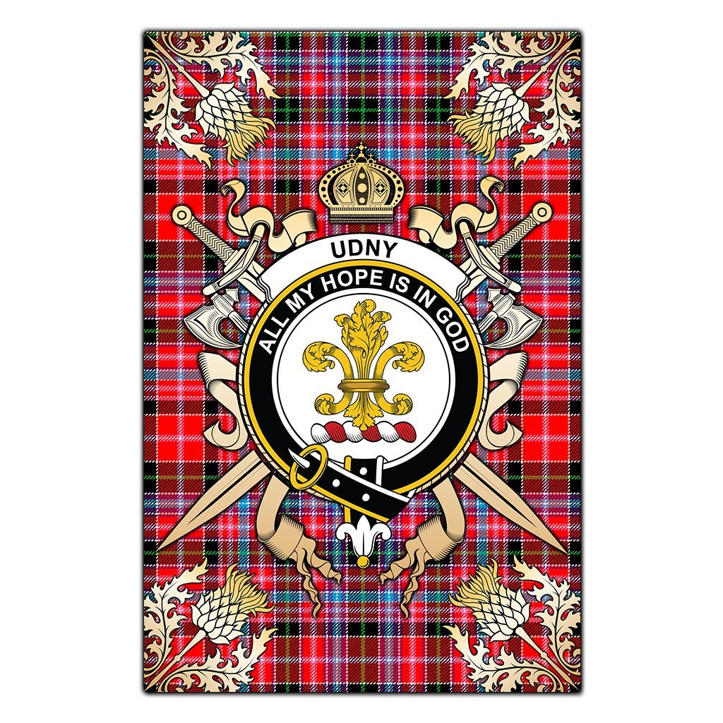 Udny Tartan Crest Black Garden Flag - Gold Thistle Style