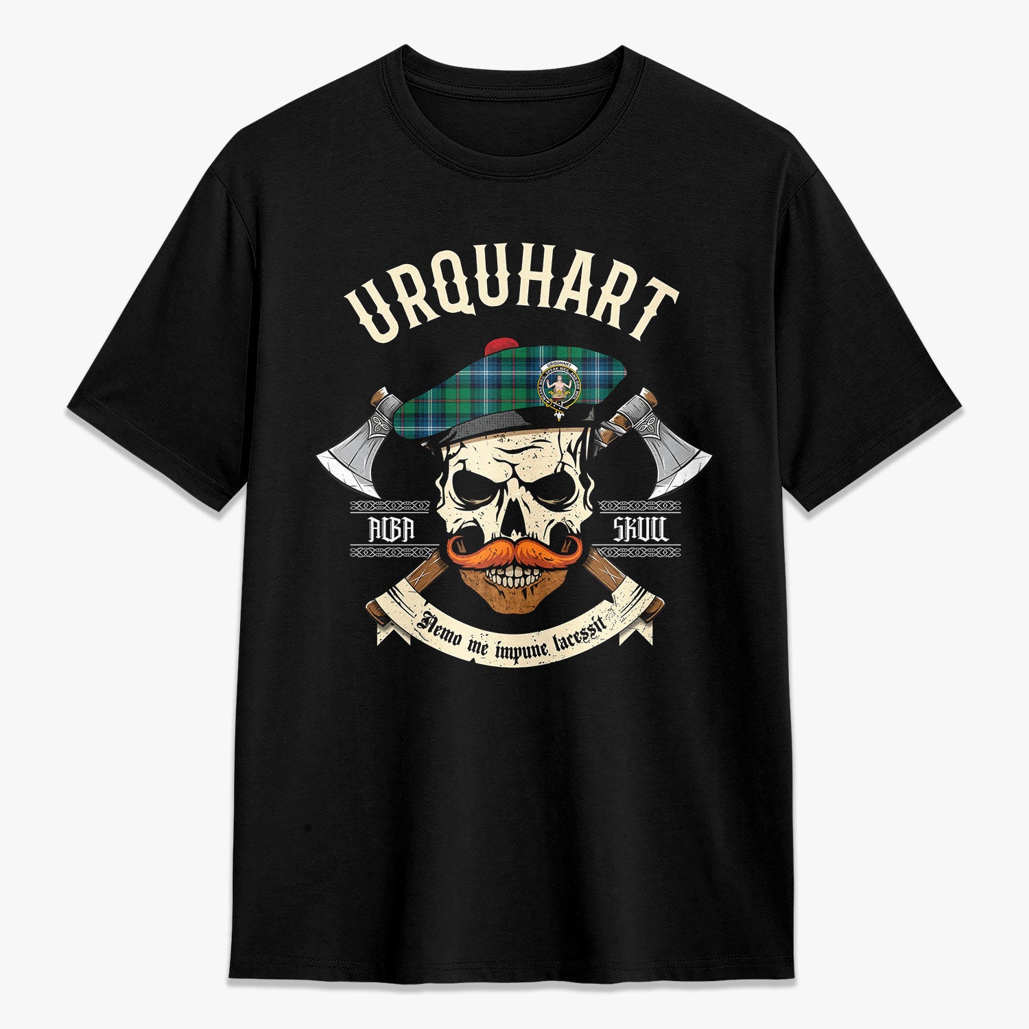 Urquhart Ancient Tartan Crest 2D T-shirt - Alba Skull Style,