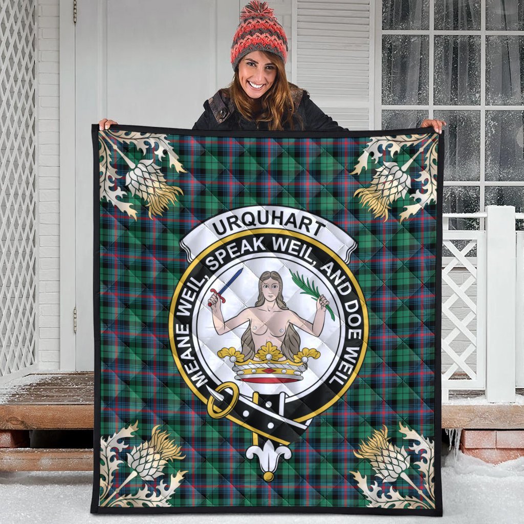Urquhart Broad Red Ancient Tartan Crest Premium Quilt - Gold Thistle Style