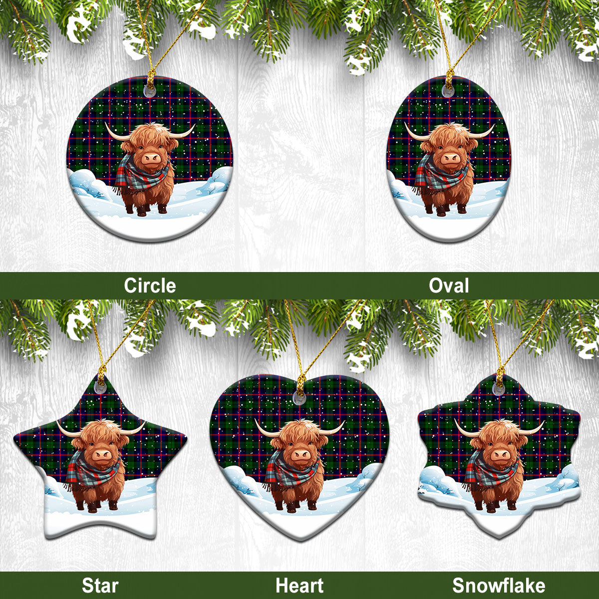 Urquhart Modern Tartan Christmas Ceramic Ornament - Highland Cows Snow Style
