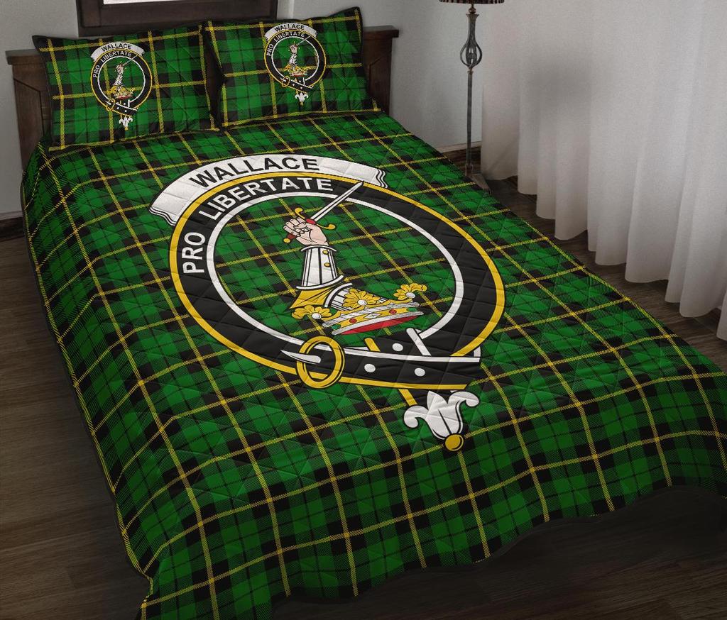 Wallace Hunting Green Tartan Crest Quilt Bed Set