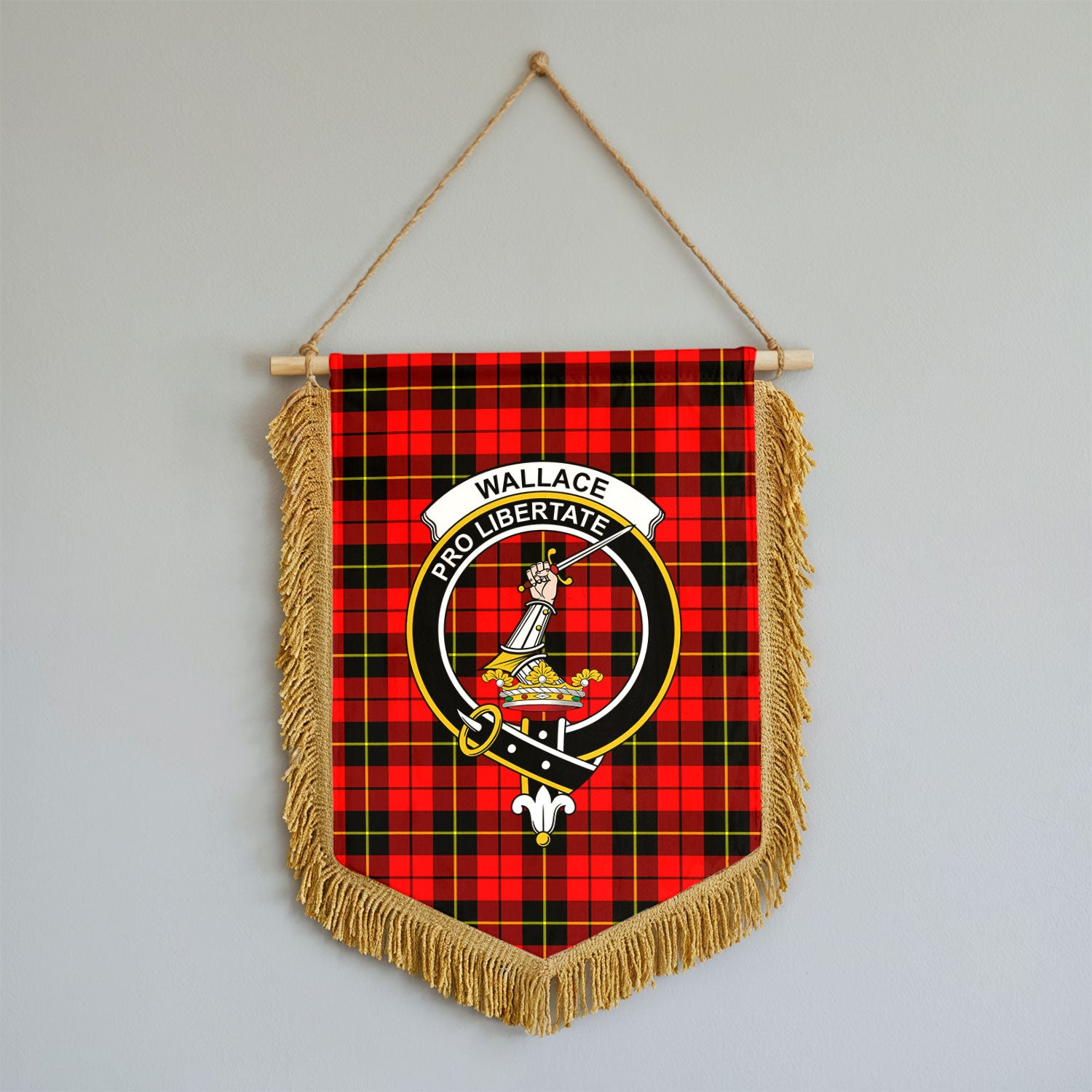 Wallace Hunting Red Tartan Crest Wall Hanging Banner - Wood Pole