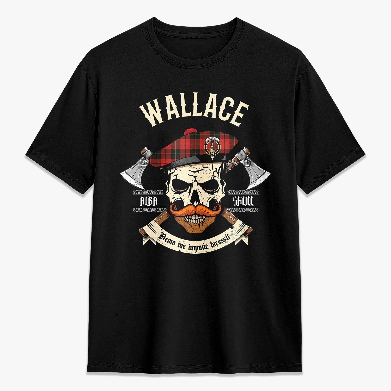 Wallace Weathered Tartan Crest 2D T-shirt - Alba Skull Style,