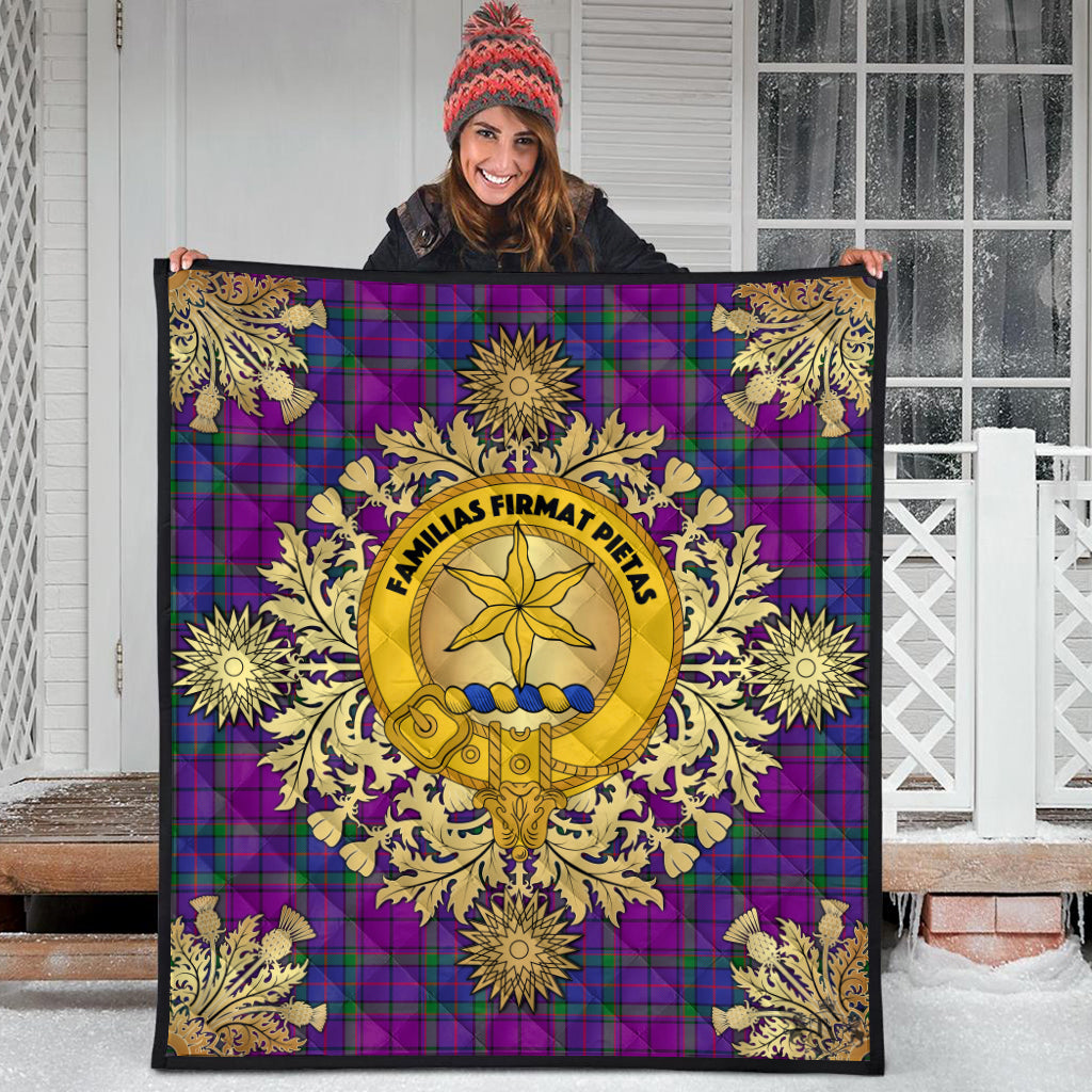 Wardlaw Modern Tartan Crest Premium Quilt - Gold Thistle Style