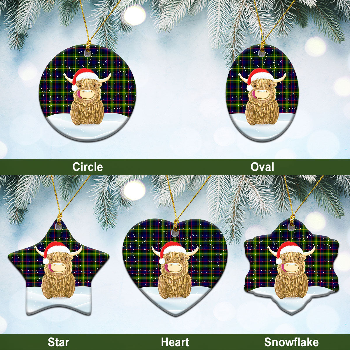 Watson Modern Tartan Christmas Ceramic Ornament - Highland Cows Style