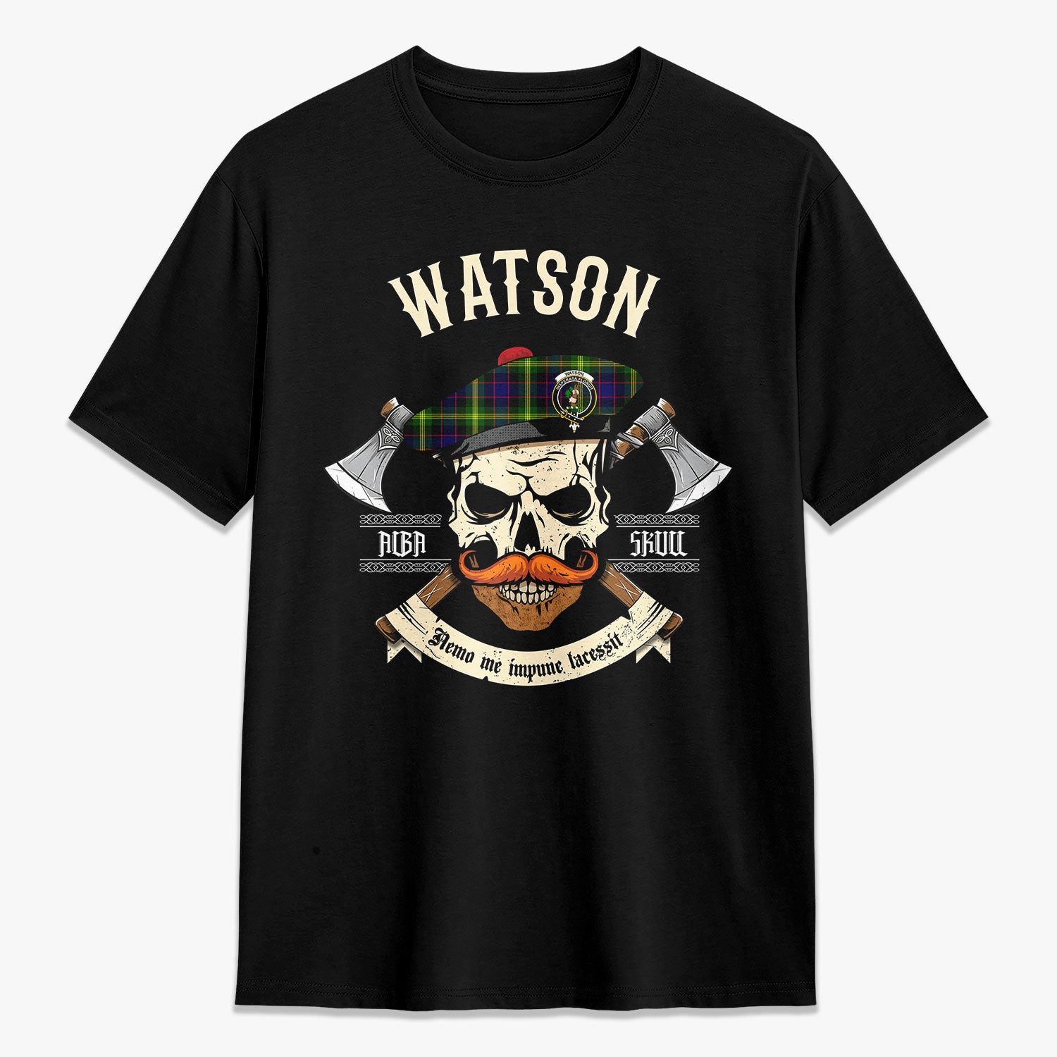 Watson Modern Tartan Crest 2D T-shirt - Alba Skull Style,