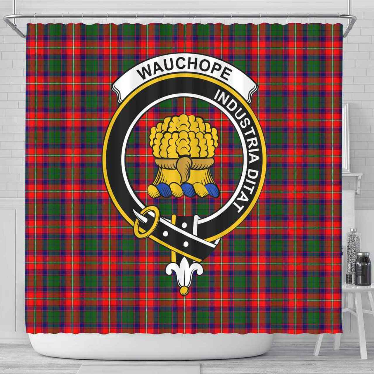 Wauchope (or Waugh) Tartan Crest Shower Curtain